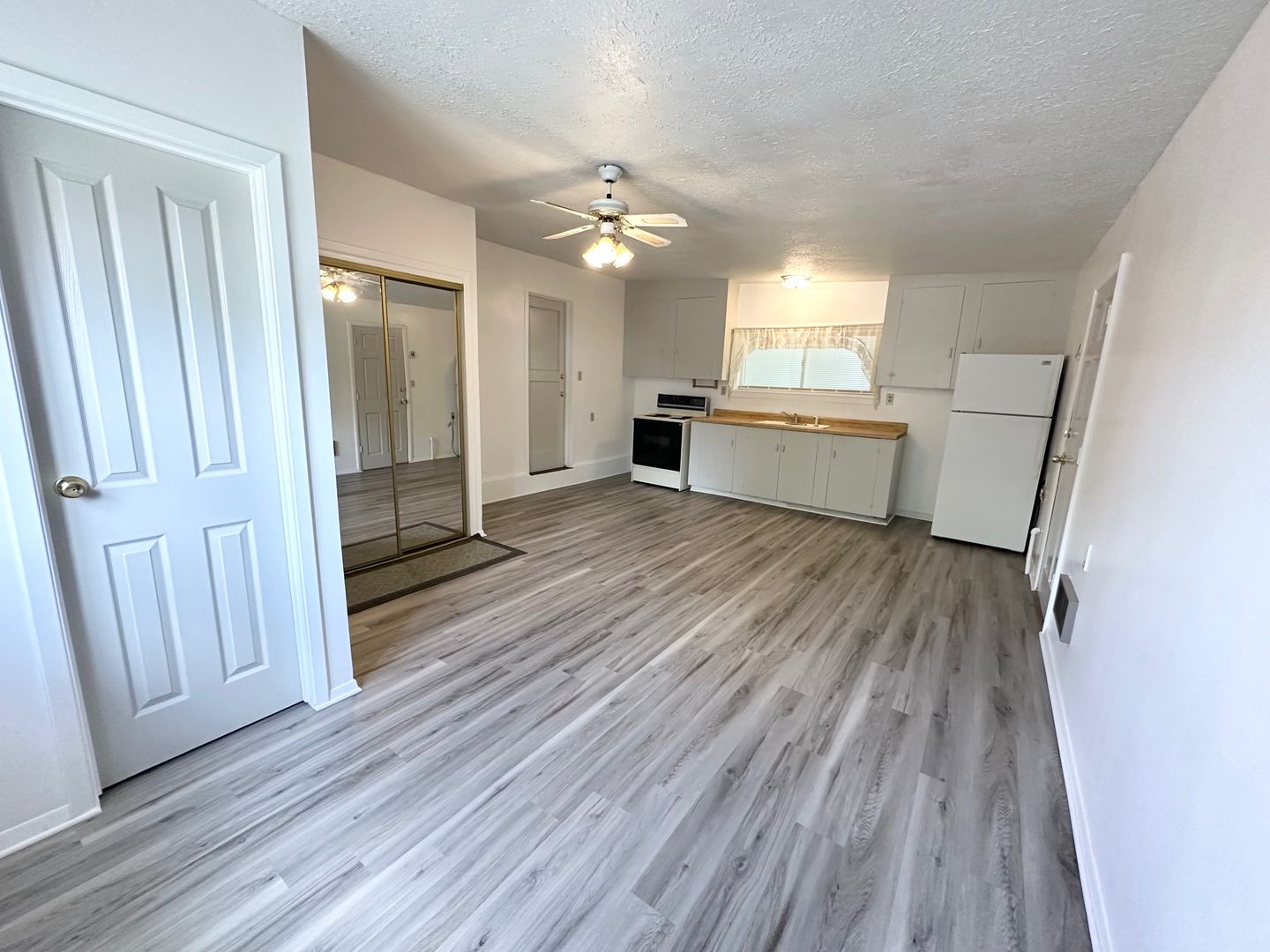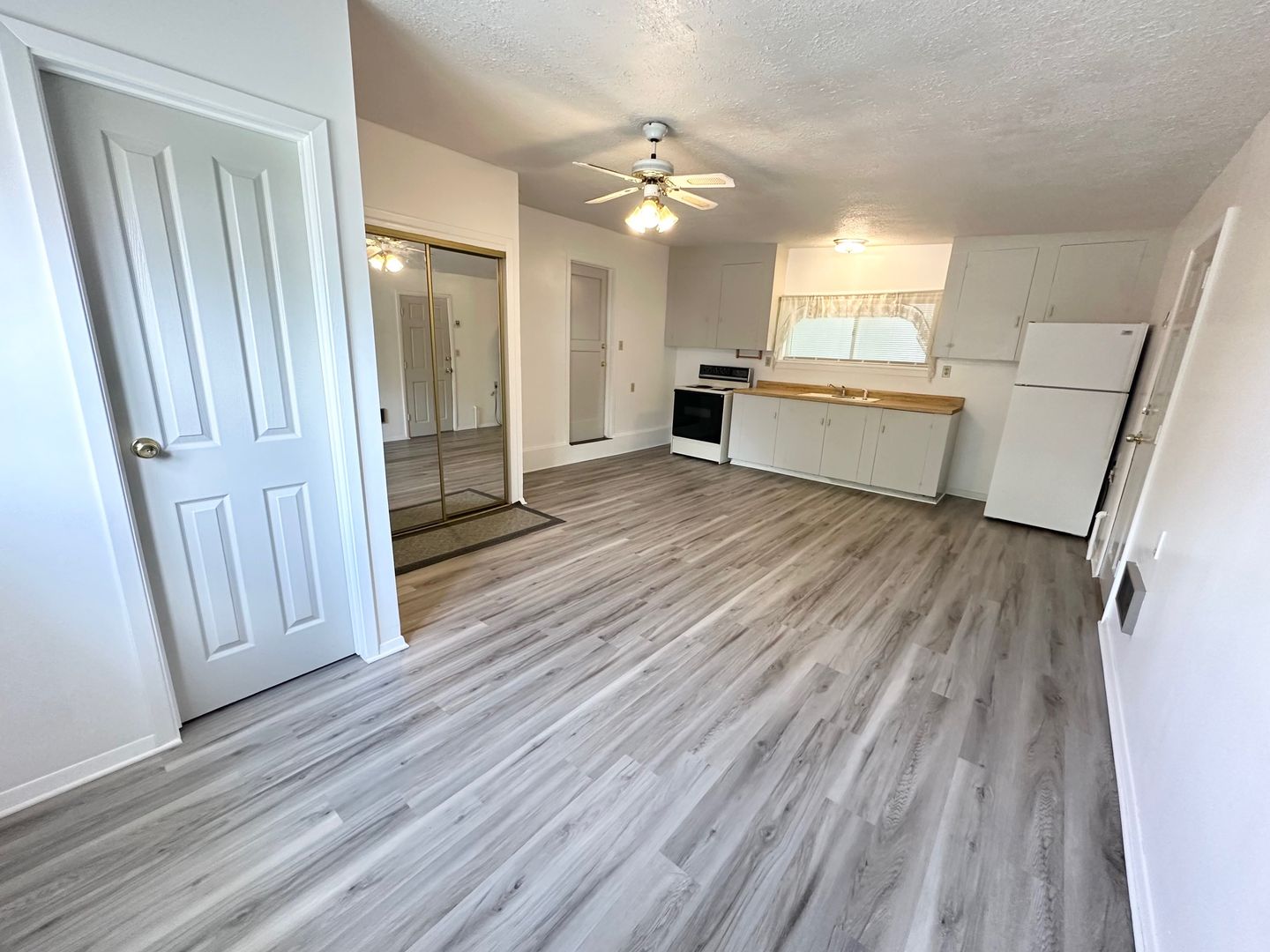 Introducing our newly renovated studio apartment in Nampa. This charming unit features solid surface flooring throughout, an oversized closet, and a ceiling fan for added comfort. The spacious kitchen boasts ample cupboards and counter space, perfect for all your cooking needs. Enjoy the privacy of a private entrance and off-street parking for convenience. With a pet-friendly policy, your furry friends are welcome to join you in your new home. The oversized shower and double pane windows add a touch of luxury to this cozy space. Located on an acre of land, you'll have plenty of room to relax and unwind. Don't miss out on this fantastic opportunity to make this apartment your own!